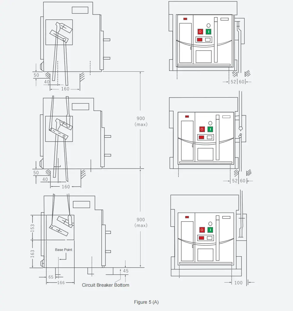 5. Выдвижной автоматический выключатель имеет три рабочих положения: положение «Подключено», положение «Проверка» и положение «Отключено». Смена положения осуществляется путем завинчивания или вывинчивания рукоятки, а индикация трех положений отображается с помощью меток на поперечной балке выдвижного основания.