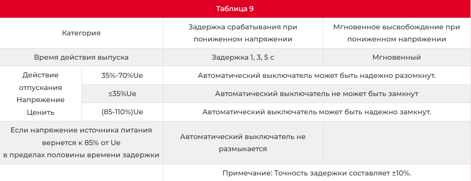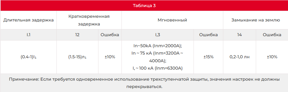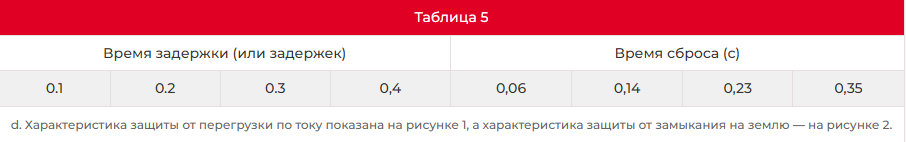 c. Характеристики защиты от кратковременных перегрузок по току с задержкой показаны в таблице 5 ниже.